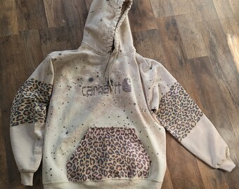 Custom Carhartt Cow Print Bleached Hoodie Etsy